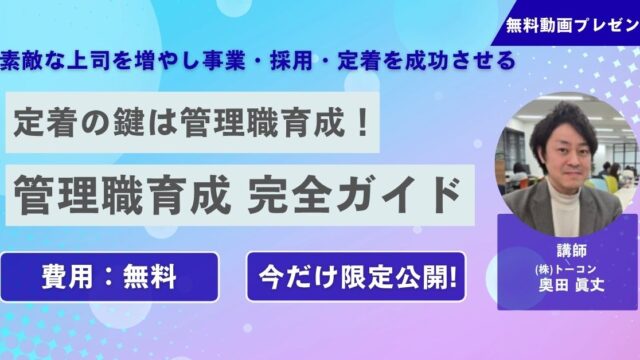 【無料動画プレゼント】管理職育成完全ガイド~素敵な上司を増やし事業・採用・定着を成功させる~