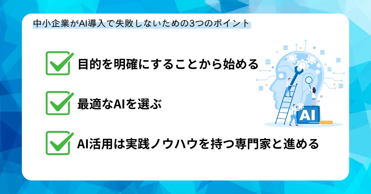 5. 中小企業がAI導入で失敗しないための3つのポイント