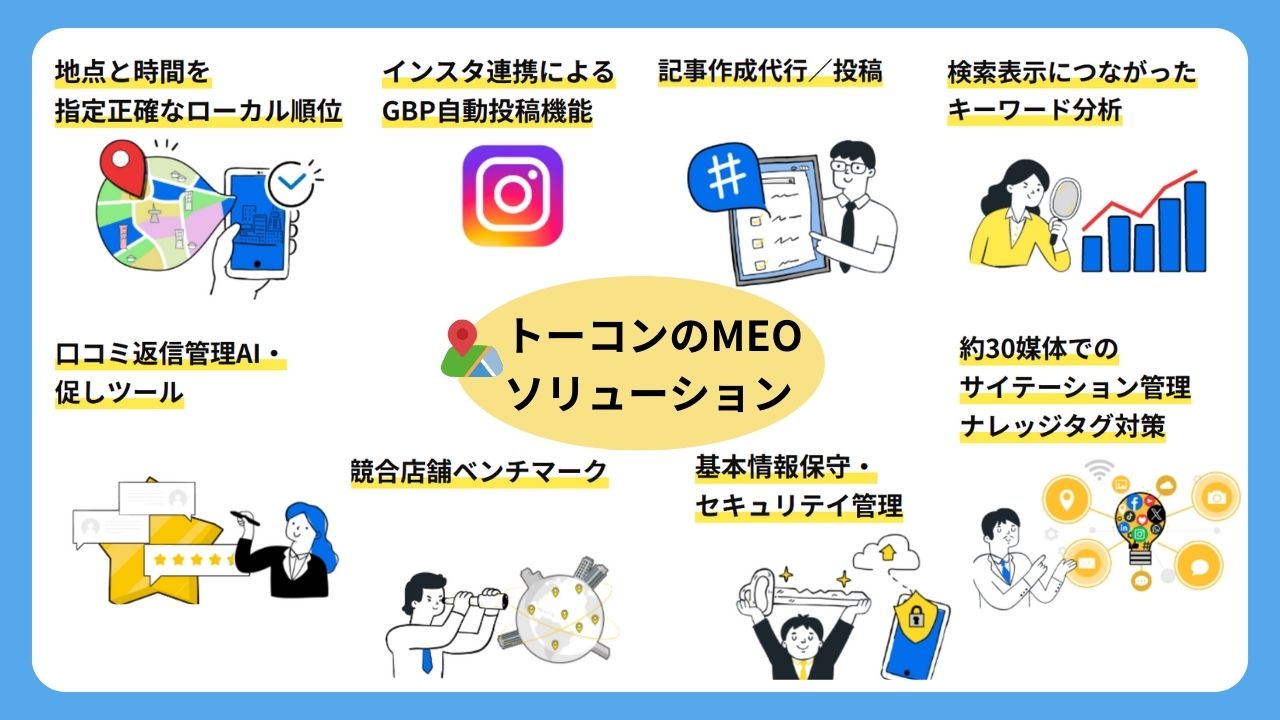 そのために必要な正確な検索順位計測や、情報管理、更新までを行なえるサービスがトーコンの「MEOソリューション」です。