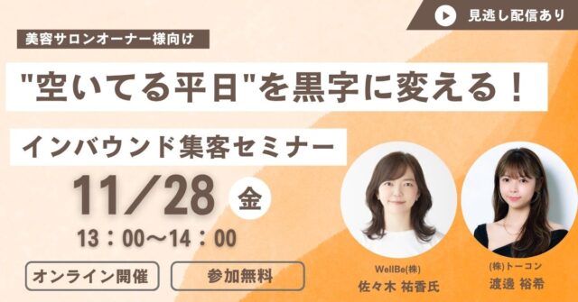 11/28(金)<美容サロンオーナー様向け>“空いてる平日”を黒字に変える!インバウンド集客セミナー
