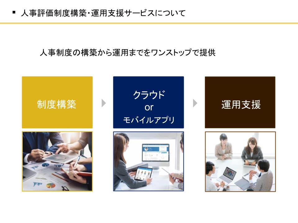 運用に用いるツールの導入支援、運用開始後の評価集計や目標の見直し、評価会議のサポートまでとことん伴走。