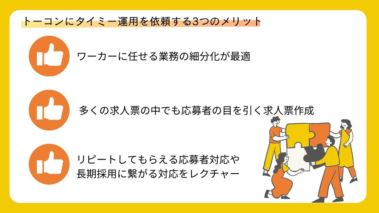 2. トーコンにタイミー運用を依頼する3つのメリット
