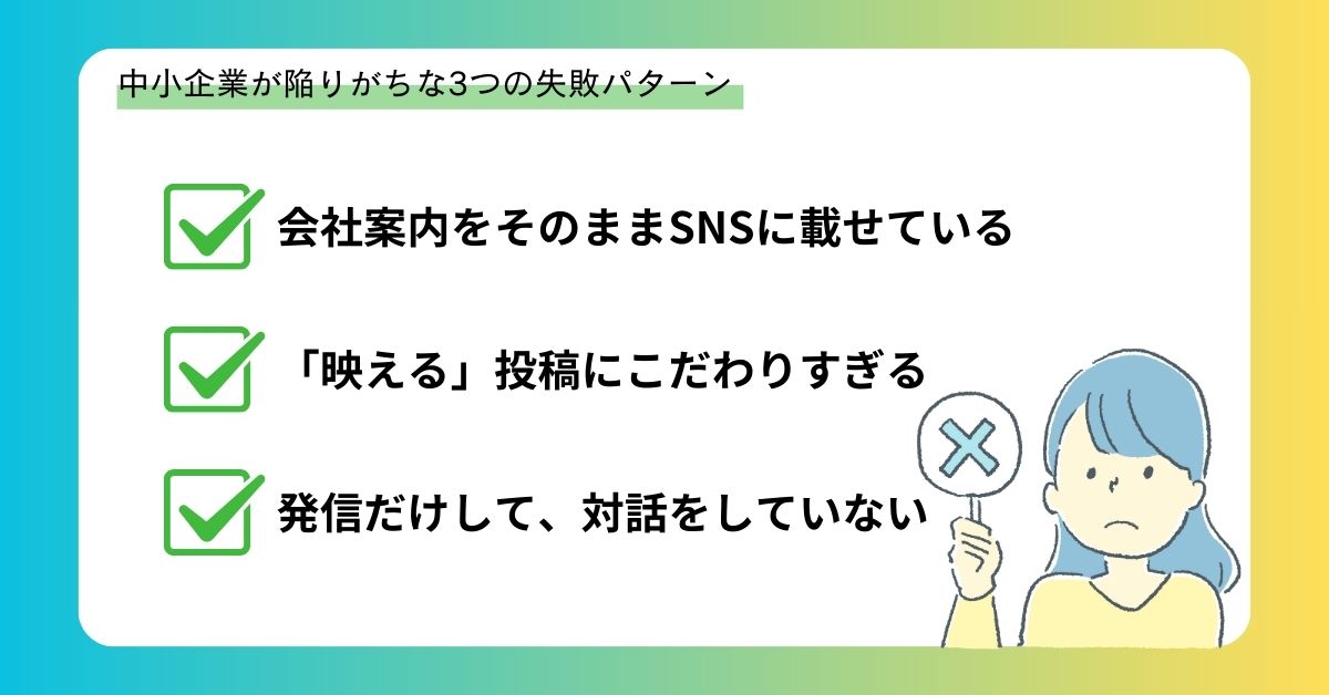 SNS採用に取り組み始めたものの、「期待した効果が得られない」「何を発信したらいいかわからない」と嘆く企業も少なくありません。これらの企業には、いくつかの共通点があります。